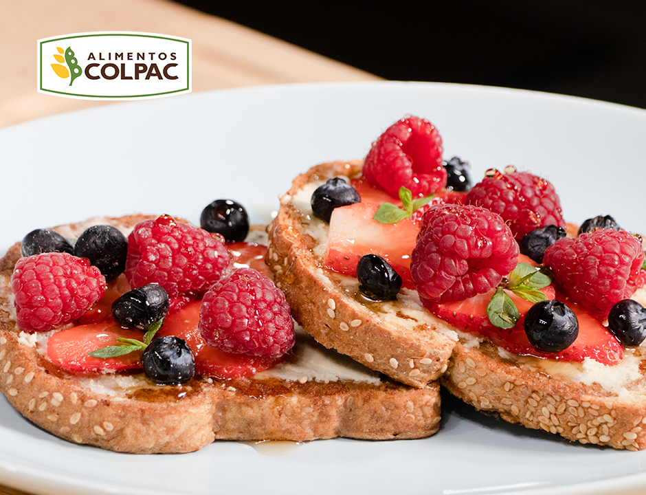 • Untar queso crema de almendras y decorar con fresas, frambuesas, arándanos y hojas de menta.